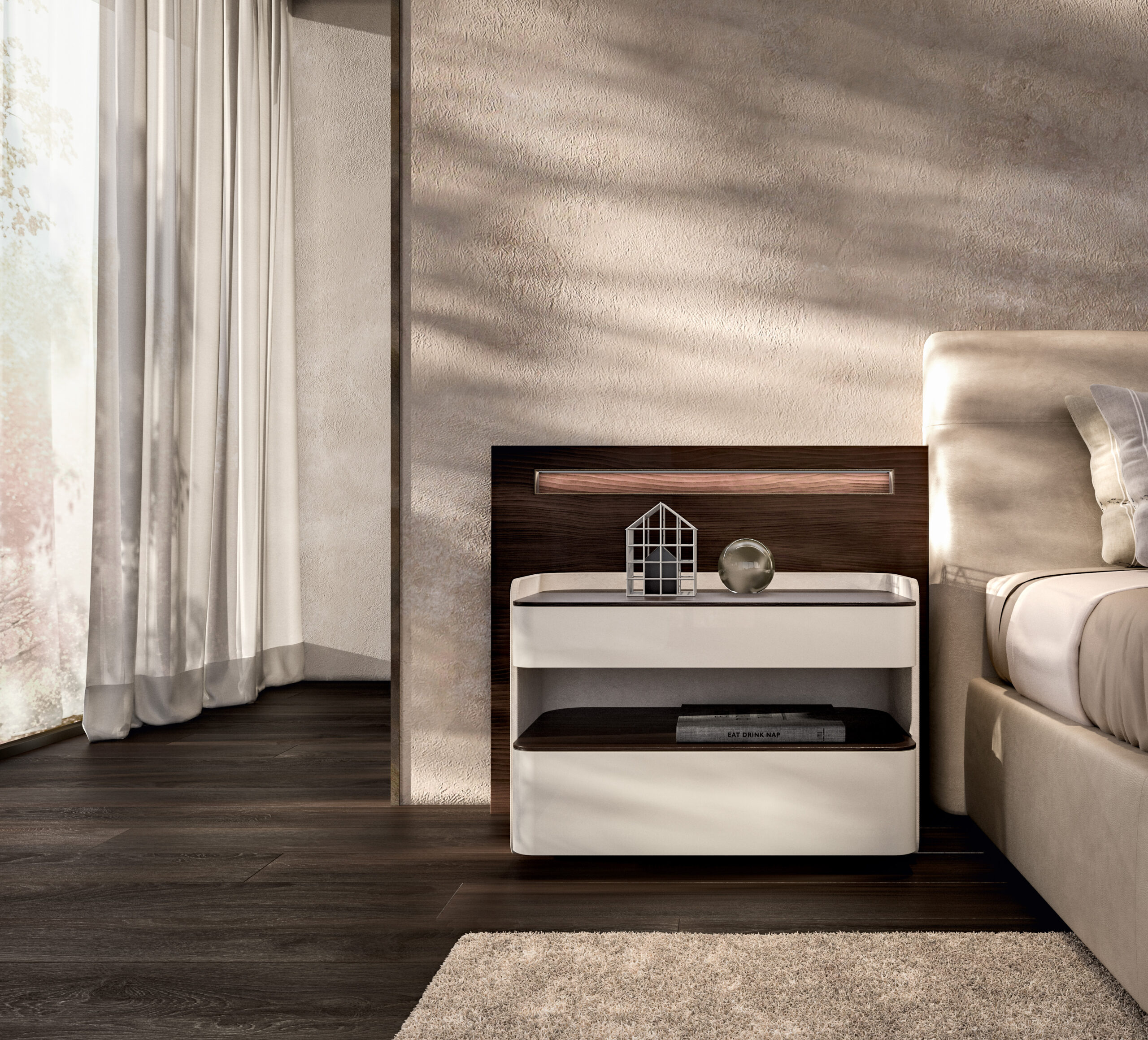 I mobili per la camera da letto New Mood sono progettati per creare una linea morbida e delicata.