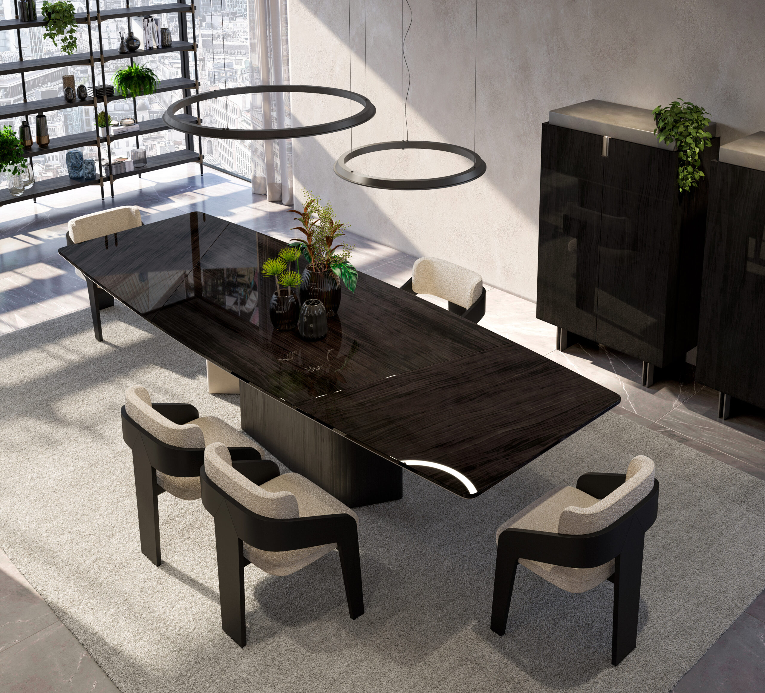 With its sinuous lines, the New Mood table is designed to fill any dining area with elegance and harmony.